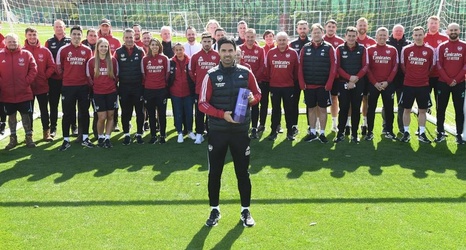 After being presented with the trophy at our London Colney training ground, Arteta was quick to acknowledge the contribution of others, especially the Arsenal fans.