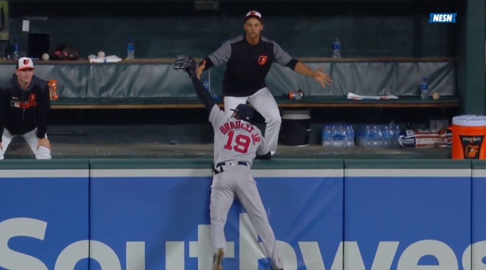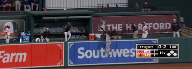 Chris Sale (8-3-1-0-14, 108) took a no-hitter into the sixth inning and he struck out the side on nine pitches in the seventh, Matt Barnes escaped a nasty ninth-inning jam that had the winning run on third with only one out, Jackie Bradley reached over the wall in left-center and pulled back what would have been a game-winning home run in the eleventh, Andrew Benintendi's solo shot gave the Red Sox a lead in the top of the twelfth, and Heath Hembree struck out the side in the bottom half for the first save of his career.