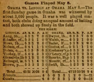 Last night, looking through issues of The Sporting Life from 1887, I found another linescore that is equally remarkable. It's from a Western League game on May 8: