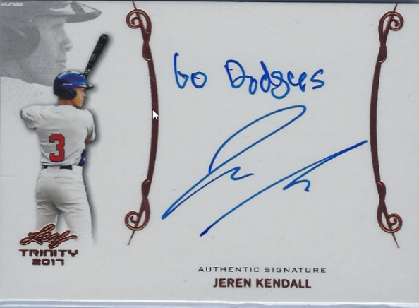 As you know, this product focuses on up-'n-coming prospects; including our 2017 1st round pick Jeren Kendall. There are also several different autographed cards of Cody Bellinger available.