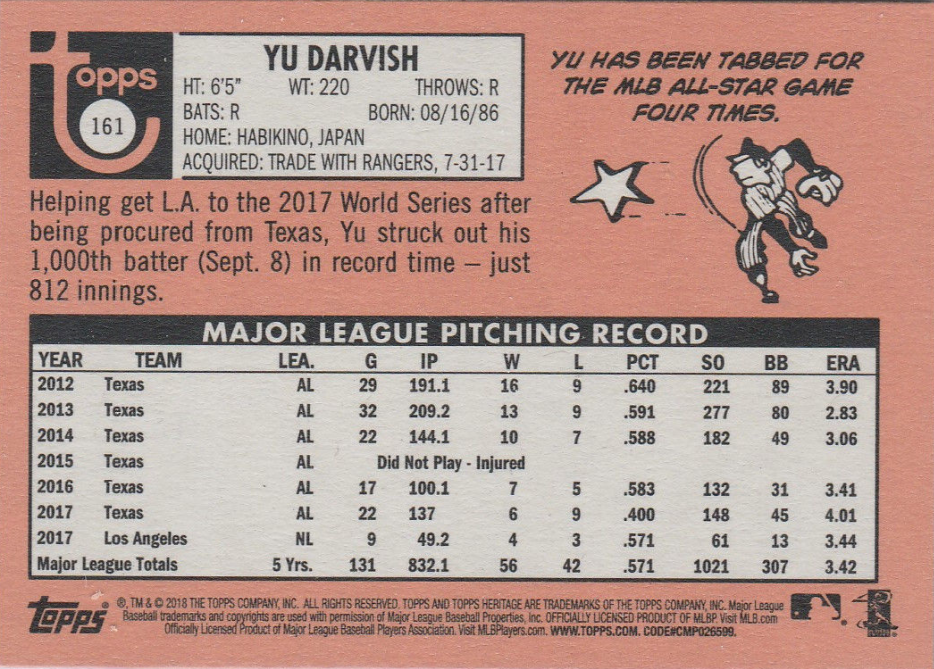 I previously erred when I initially put up a listing of Dodgers variations found in packs of Topps 2018 Heritage Baseball card brand. Originally, I indicated that there were just three variations to chase after -- Seager, Bellinger & Kershaw. That was wrong. Instead, there are nine to collect; including a variation for Yu Darvish. Check them all out below.
