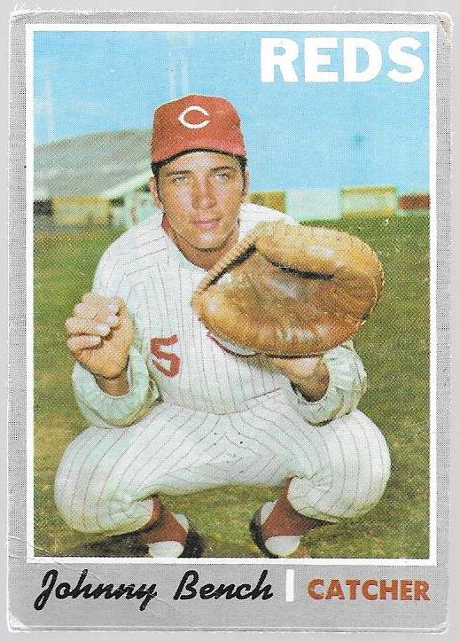 I finally landed one of the toughest Johnny Bench cards there is. His 1970 Topps card is a thing of beauty with a great pose, great color, and a cool Spring Training background. It also happens to be just his third Topps card, from a popular set, and most importantly a high number in that set. All of which have combined to keep me priced out of even a lower-grade/visually-appealing copy of the card. Until now....