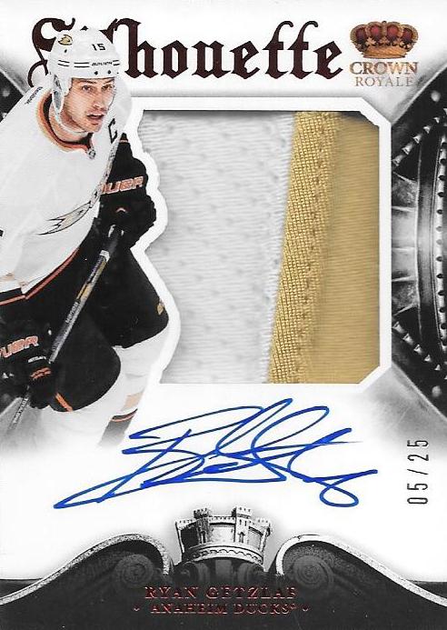 I had $6.68 in eBay cash to burn and after some consideration decided that the above was the perfect piece of cardboard to put it towards. After those free dollars and cents were used up the grand total out of pocket for this gorgeous 2013-2014 Panini Crown Royale Silhouette Auto-Patch was $8.