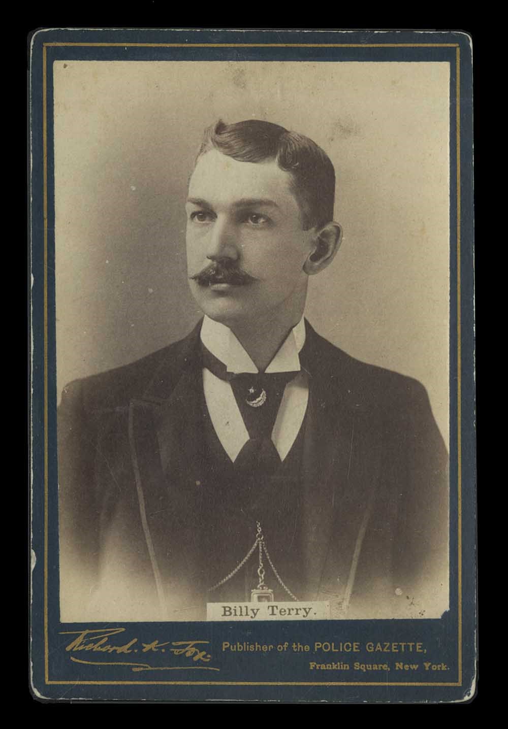 One of the hallmarks of REA is the outstanding selection of vintage (typically pre-war) cards and memorabilia. As an example, check out the rarity below. This is an 1889 Police Gazette cabinet card of the ever-popular William "Adonis" H. Terry. These cards were issued as premiums that readers of the Police Gazette could purchase for a dime. At the time, this weekly magazine was one of the more prominent periodicals in the country to provide in-depth stories on the game.
